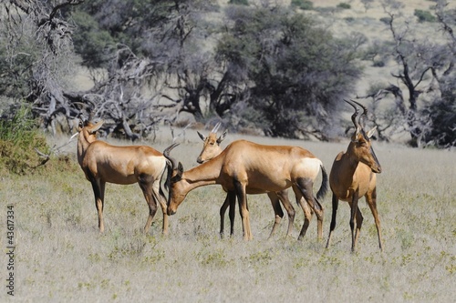 © wolfavni, Fototapeta premium Red hartebeest (Alcelaphus caama) family herd,Kgalagadi Park