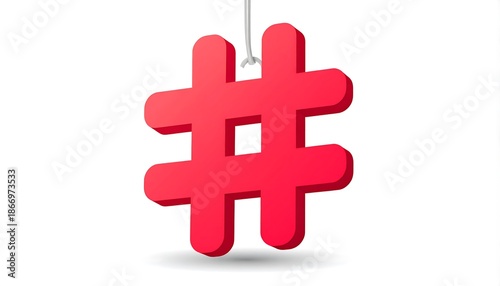 Obraz premium Red Hashtag Symbol Hanging Isolated on White Background.