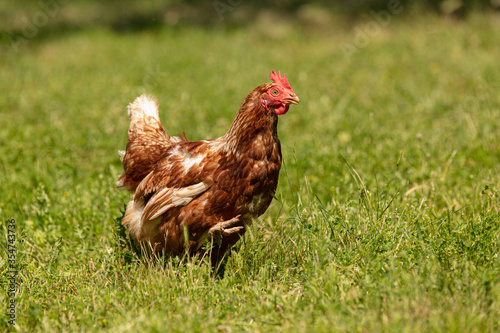 Fototapeta premium Red-headed laying hen free