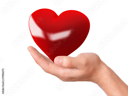 © Mego-studio, Fototapeta premium red heart in hand. love concept