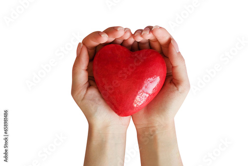 © tiena, Fototapeta premium Red heart in hands on a transparent background