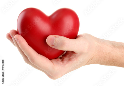 © Africa Studio, Fototapeta premium Red heart in man hand, isolated on white