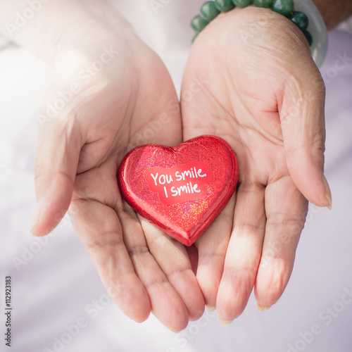 Fototapeta premium Red heart in senior's hands
