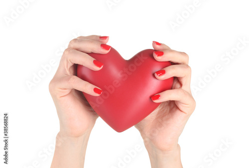Obraz premium Red heart in woman's hands isolated on white