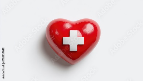© MySamLobatobrock, Obraz premium Red heart-shaped object with white plus sign