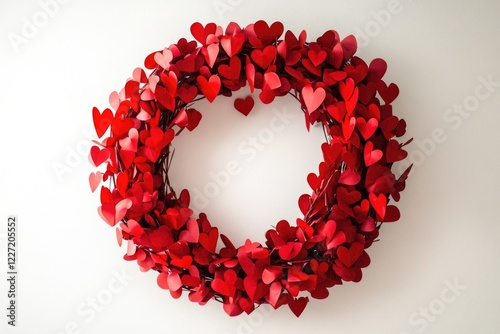 © Rodica, Obraz premium Red heart-shaped wreath on white background for valentine's day decor