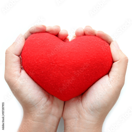 © phaitoon, Fototapeta premium Red heart symbol on hands
