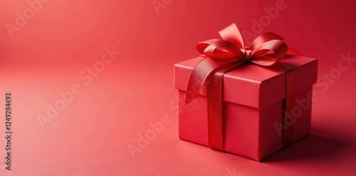 Obraz premium Red heart-tied gift box, festive ribbon, present inside, ribbon, box