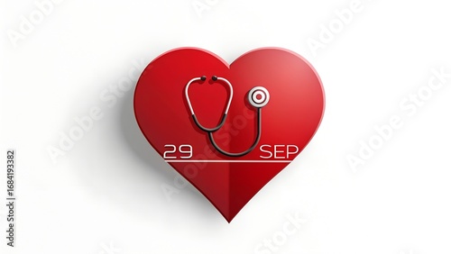© Creative_johirul, Fototapeta premium Red heart with stethoscope and date isolated on white background