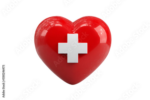 © Robiul, Obraz premium Red heart with white cross symbol.