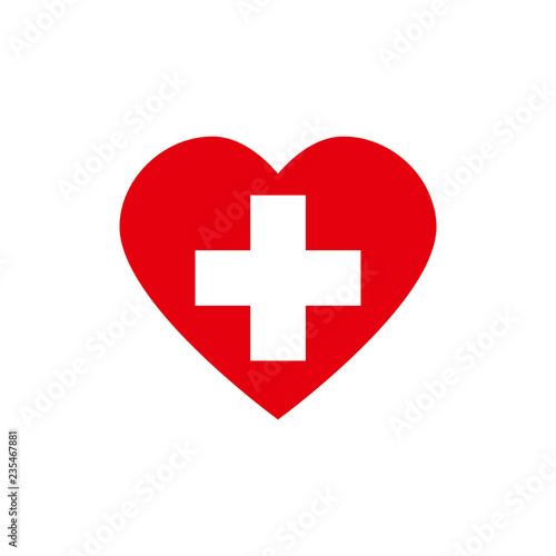 © pupsy, Obraz premium Red heart with white cross. Symbol for hospital