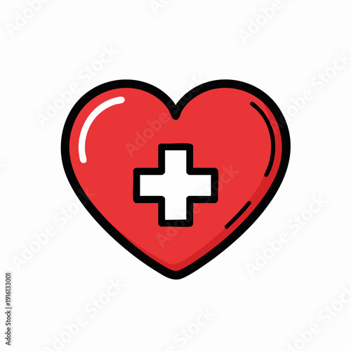 © rashyn, Obraz premium Red Heart with White Medical Cross Symbol.