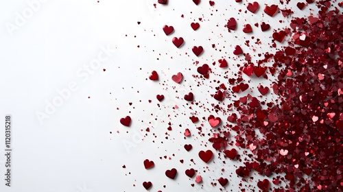 © sungedi, Obraz premium Red hearts confetti scattered on white background