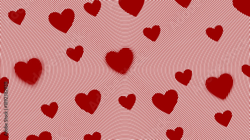 Obraz premium Red Hearts Pattern on Circular Optical Illusion Background