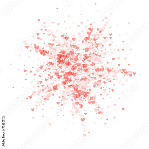 Fototapeta premium Red hearts scattered on white background.
