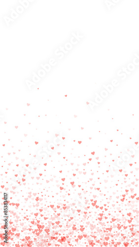 Fototapeta premium Red hearts scattered on white background.