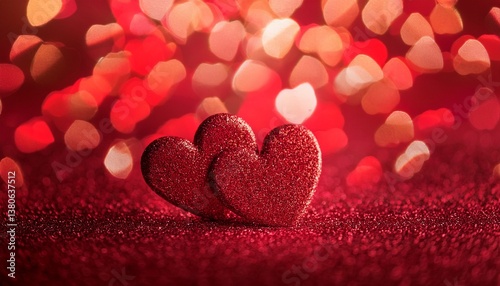 Fototapeta premium red hearts sparkling glitter bokeh background banner valentines day abstract...