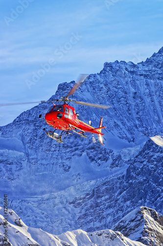 © Roman Babakin, Naklejka premium Red helicopter in swiss alps in winter sunshine