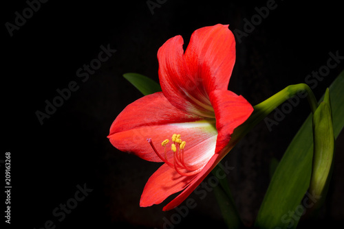 Fototapeta premium Red hemerocallis flower in dark background low key Bela Lugosi
