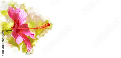 © Kort Feyerabend, Naklejka premium red hibiscus flower watercolor illustration on a white background with copy space