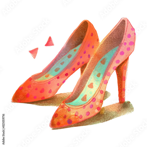 © everythingin, Obraz premium Red high heels shoes white background (11)