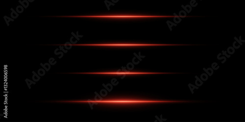 © Oleksandr, Fototapeta premium Red horizontal neon highlights. On a black background.