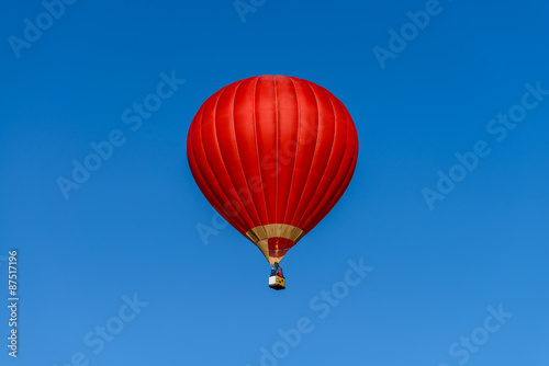 © smspsy, Naklejka premium red hot air balloon against the blue sky