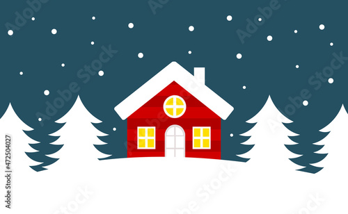 Fototapeta premium Red house in winter forest scenery.