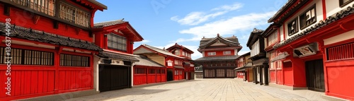 Fototapeta premium Red Japanese street, sunny day, historical buildings, travel