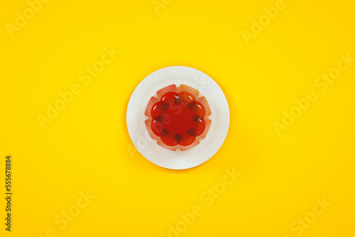© alesmunt, Fototapeta premium red jelly pudding on plate, 3d render, flat lay
