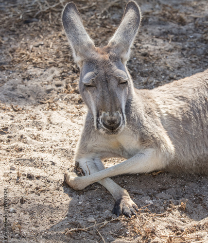 Fototapeta premium red kangaroo dozes off close up