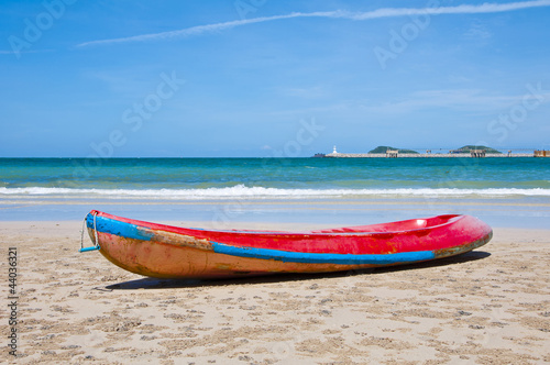 Fototapeta premium Red kayak on the beach with blue sky , Eastern of Thailand