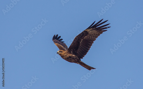 Obraz premium Red Kite (Milvus milvus) is a large predatory bird. Flies a lot faster due to...