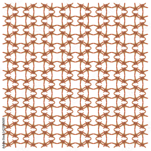 Fototapeta premium Red-knobbed starfish, Protoreaster linckii, in repeated pattern, in front of white background