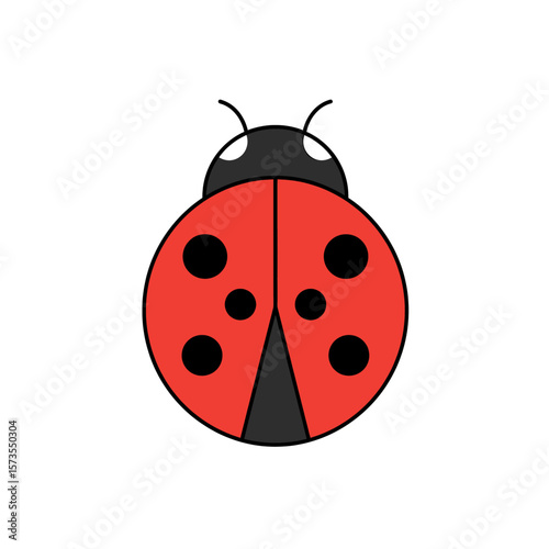 Obraz premium Red Ladybug Icon Black Spots Bold Black Outline Simple Design