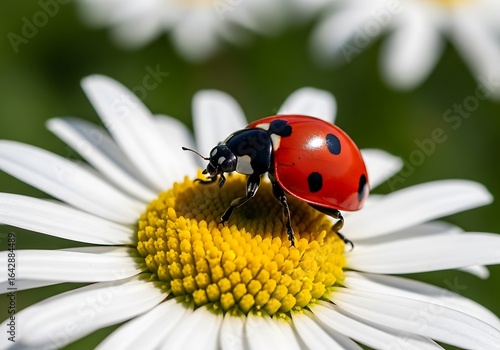 © Stock Shop, Fototapeta premium Red ladybug with black spots on a white daisy flower