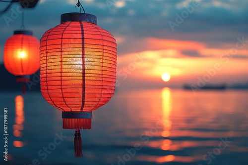 © gudangPIXEL, Obraz premium Red Lanterns at Sunset