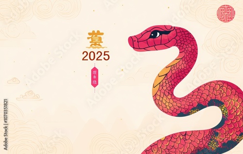 Obraz premium red lanterns, firecrackers, fireworks, auspicious clouds. 2025 Chinese New Year. Happy New Year 2025