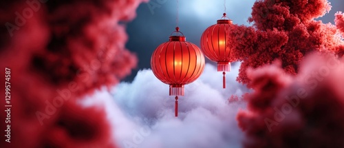 Obraz premium red lanterns in a dreamlike setting