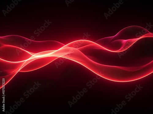 © Desmond, Obraz premium Red laser light wave pattern in black, dark background