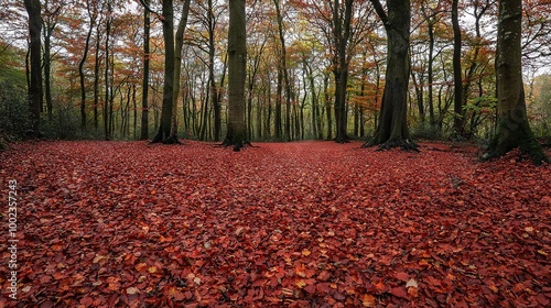 © Alice, Obraz premium Red-leaf-strewn forest path with tree background