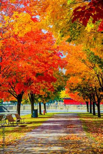 © Vincent Jiang, Naklejka premium Red leaves in fall season on Mount Royal in Montreal