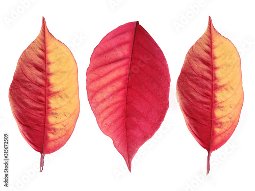 © Sarah Saa, Obraz premium Red leaves isolated on white background.