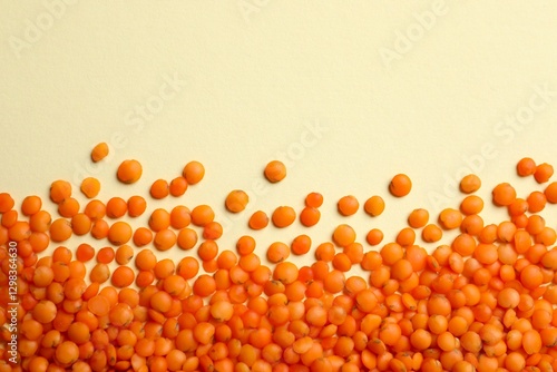 © Sunlight, Fototapeta premium Red lentils on color background