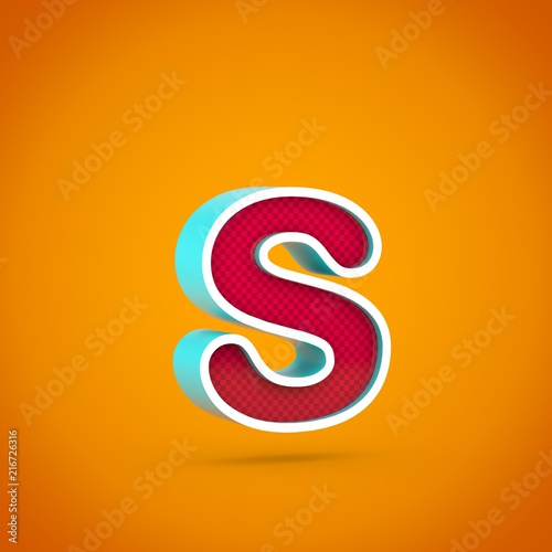 © Whitebarbie, Obraz premium Red letter S lowercase with carbon fiber texture isolated on hot orange background.
