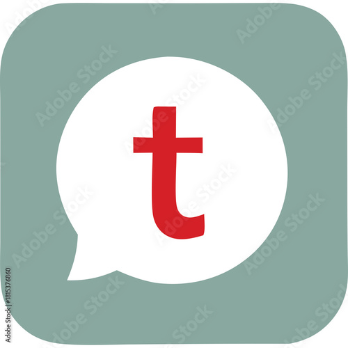 © Rumie, Obraz premium Red letter T inside white speech bubble over gray square background simple icon graphic design element
