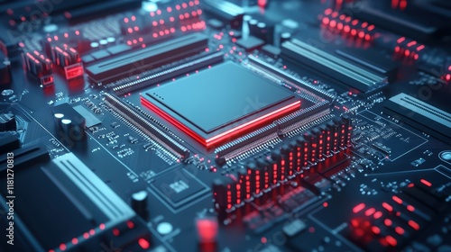 Fototapeta premium Red light illuminates computer processor, a glimpse into the core of computing power
