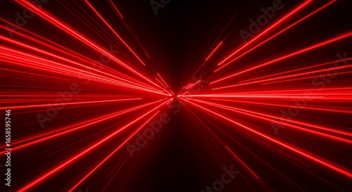 Fototapeta premium Red Light Speed: A mesmerizing display of red light trails, radiating from a...