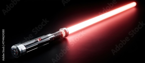 © satisfied, Fototapeta premium Red Lightsaber on Dark Surface