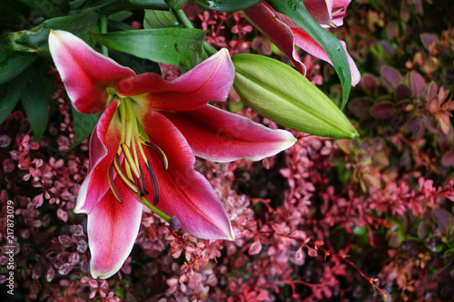 Obraz premium red lilly flowers texture